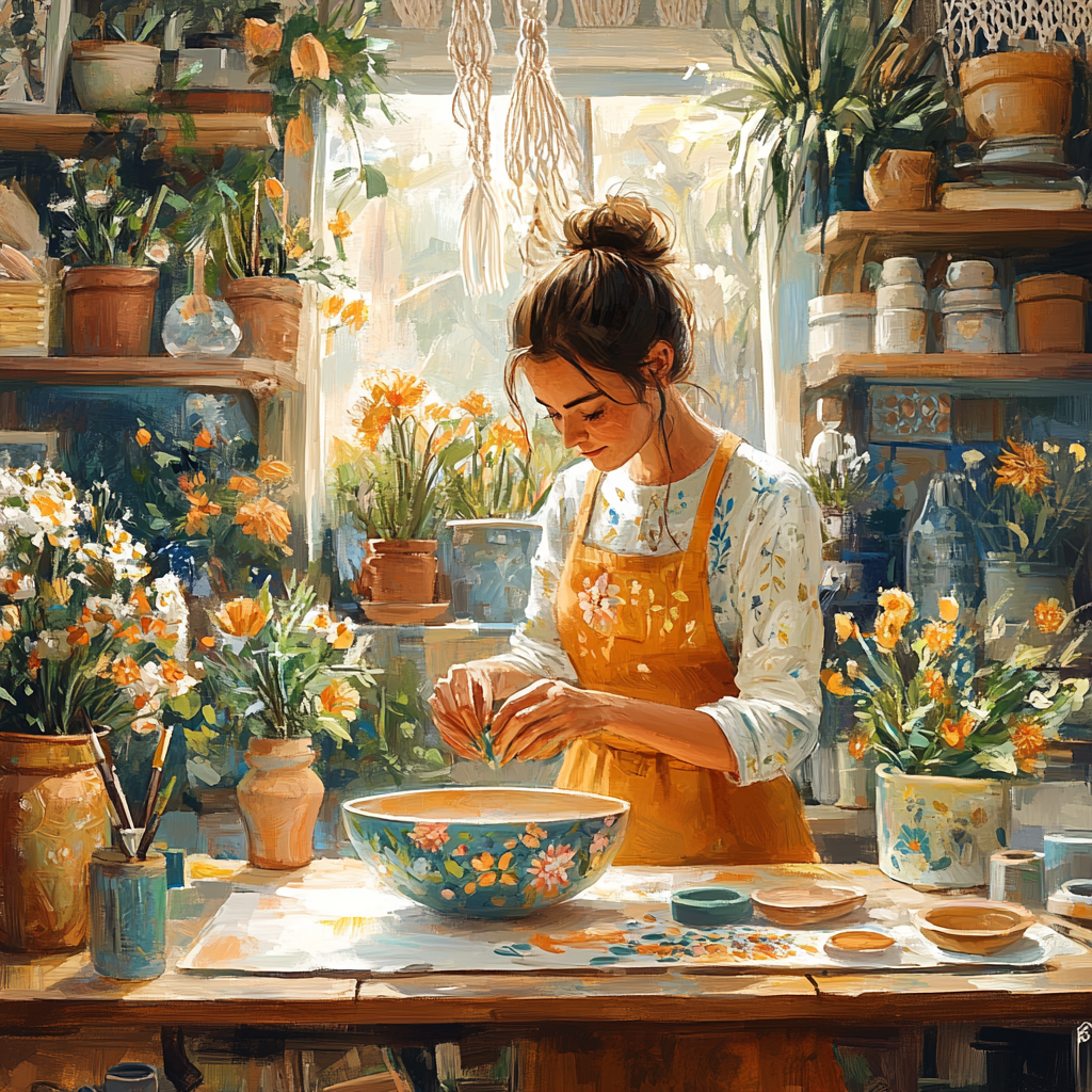 Finished products are fired and picked up later.